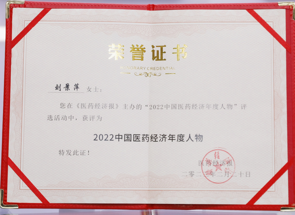 贝斯特药业集团董事长刘景萍当选“2022中国医药经济年度人物”